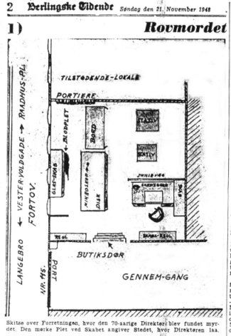 Dræbt 19. november 1948 ca. kl. 17.30 i sin forretning på Vester Voldgade 115.